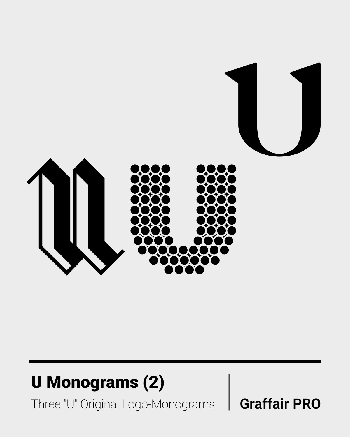 U Monograms (2): The 2nd set of three original "U" logo-monograms, included in the "1050 SVG Monograms" super bundle, amongst others, which also features an Index catalog.