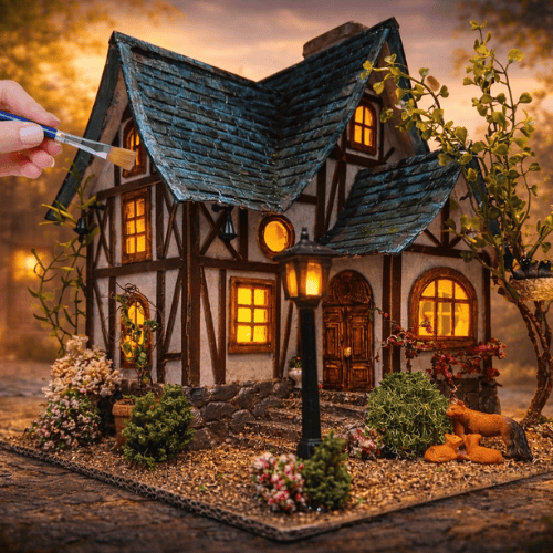 Now you can make your own with my cardboard Blue Roof Tudor Cottage Template