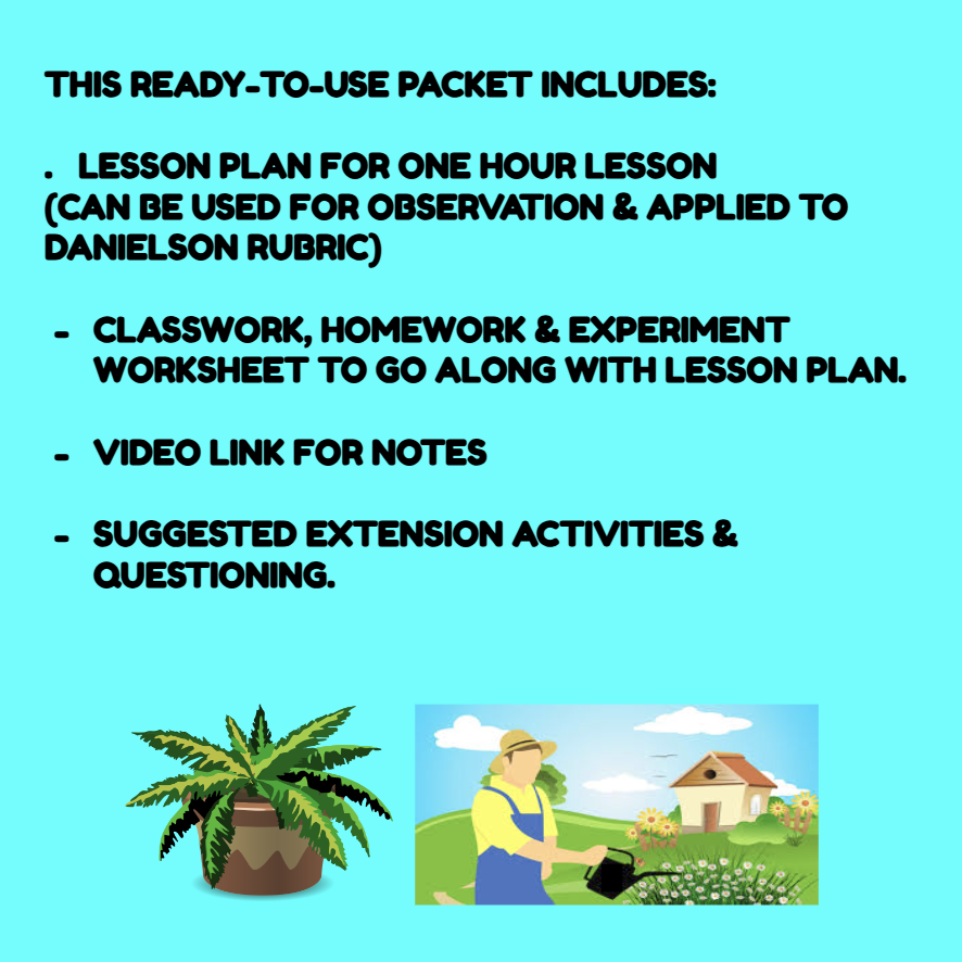 PARTS OF PLANT & PHOTOSYNTHESIS LESSON PLAN WITH WORKSHEETS: 3RD/4TH GRADES