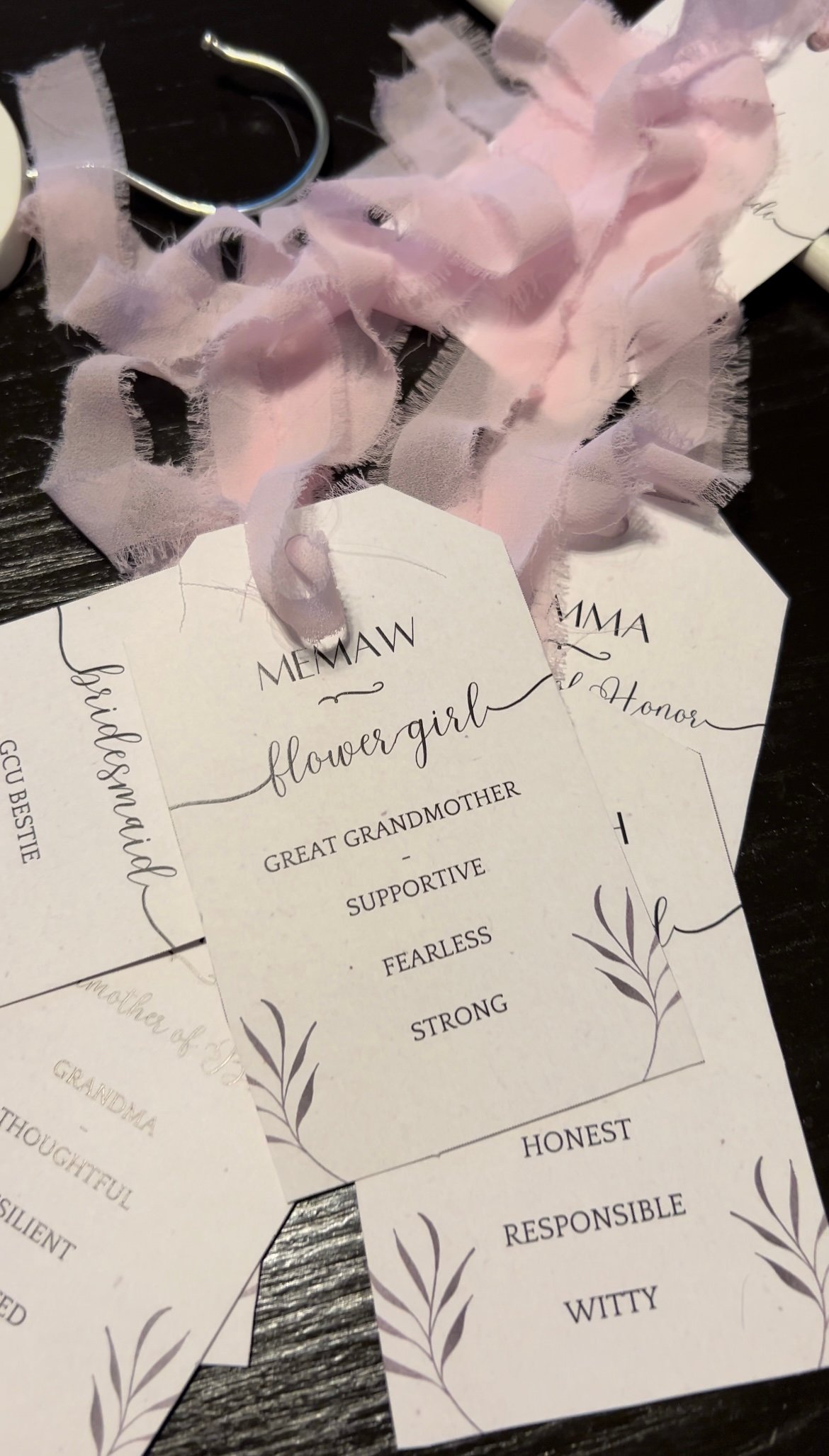 Ready to create a wedding gift that will touch the hearts of the people close to you? These unique wedding party tags are perfect for bridesmaids, mothers of the bride and groom, flower girls, grandmothers, family and friends alike. Give them a simple and inexpensive DIY gift that they will never forget.
