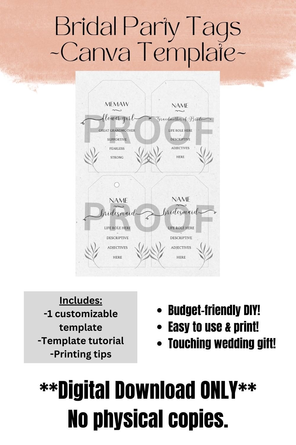 Bridal Party Tags Template - DIGITAL DOWNLOAD ONLY