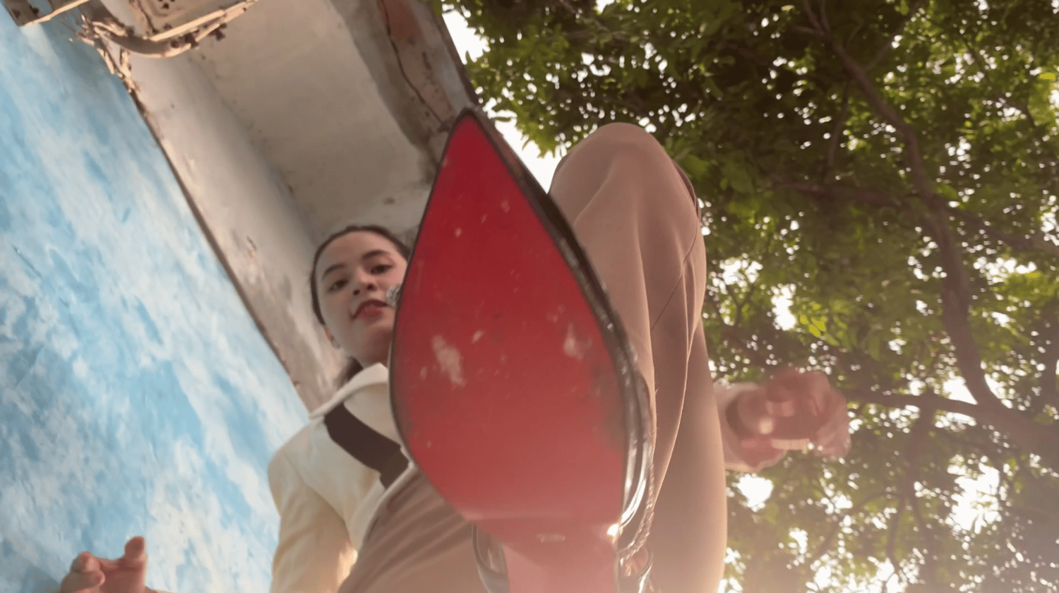 Could Chintya kick in stiletto heels?