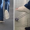 ARRIVING ON CRUTCHES...GORGEOUS TOES ON A TOEPLATE...LEAVING ON CRUTCHES.