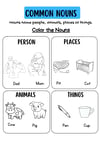 Common nouns are the everyday names for people, places, animals, and things. Kids see common nouns, but can they identify them in a sentence? Our Nouns Worksheet makes this easy through fun colouring and writing activities, helping little learners master the basics of grammar, one naming word at a time.