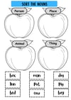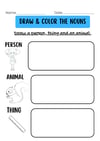 - Colouring Activities: Children are asked to "Colour the Nouns" or use specific colour codes (e.g., Orange for Person, Green for Place, Red for Thing) to identify different categories.