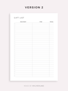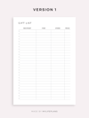 This is a printable gift list planner — just download, print, and start using it right away.