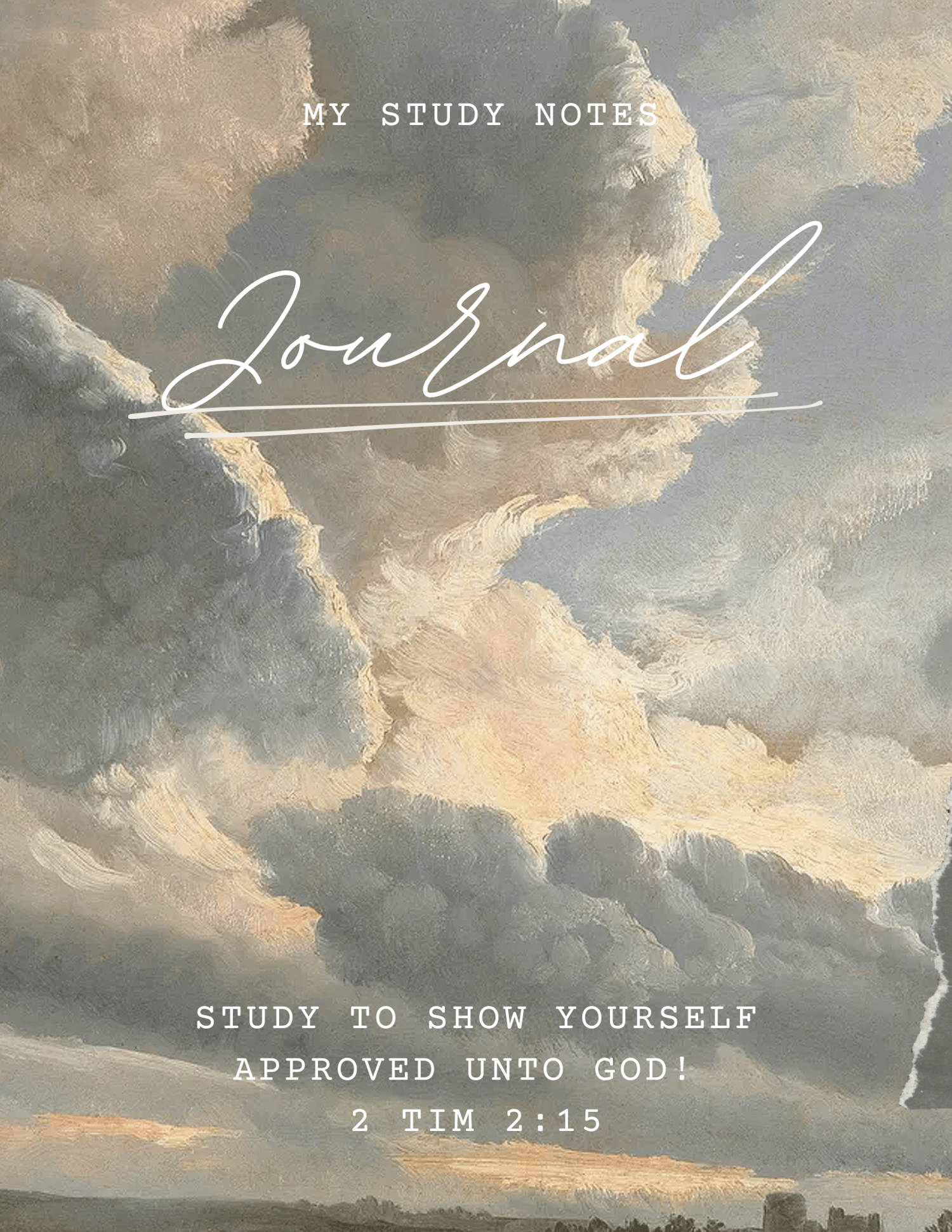 The My Study Notes Journal is a beautifully designed Bible study companion, perfect for deepening your understanding of God's Word. With an elegant cloud-themed cover featuring 2 Timothy 2:15, this journal encourages you to study diligently and grow spiritually. Whether for personal study, devotionals, or group discussions, this journal helps you stay organized and intentional in your spiritual growth. Perfect for anyone seeking to grow in faith and understanding!