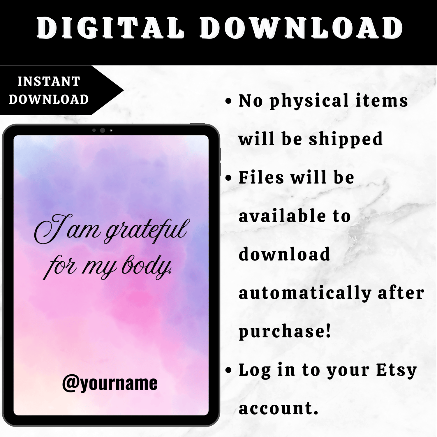 No shipping, no waiting. Once purchased, you’ll receive instant access to your Gratitude Affirmations file.