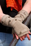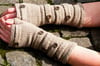Sokol mitts are knit in the round from the bottom up. The main part of the mitts are knit in plain stockinette, with just a few rounds of ribbing along the edges. The buckles are added at the end by turning the mitts 90º/270º and picking up stitches along the sides. They are knit flat across the width of the mitts and decreases are worked to form the tips. The tip of each buckle is attached with a button.