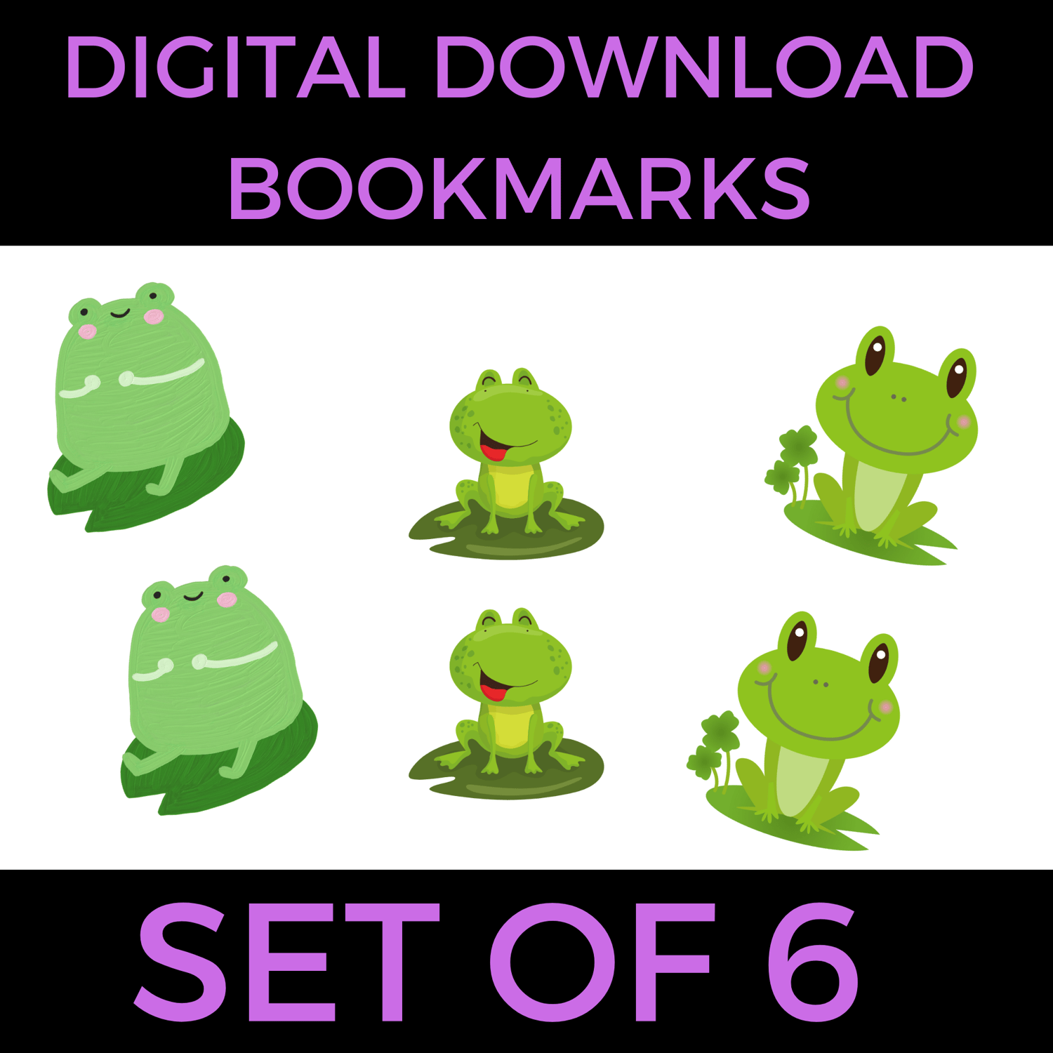 Set of 6 Frog Bookmarks Digital Download