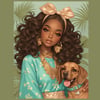 Add a touch of elegance and charm to your space with this exclusive set of 6 beautiful cartoon illustrations, featuring a stunning African American woman and her adorable dog. These unique art prints are perfect for anyone looking to enhance their decor with sophisticated and heartwarming artwork.