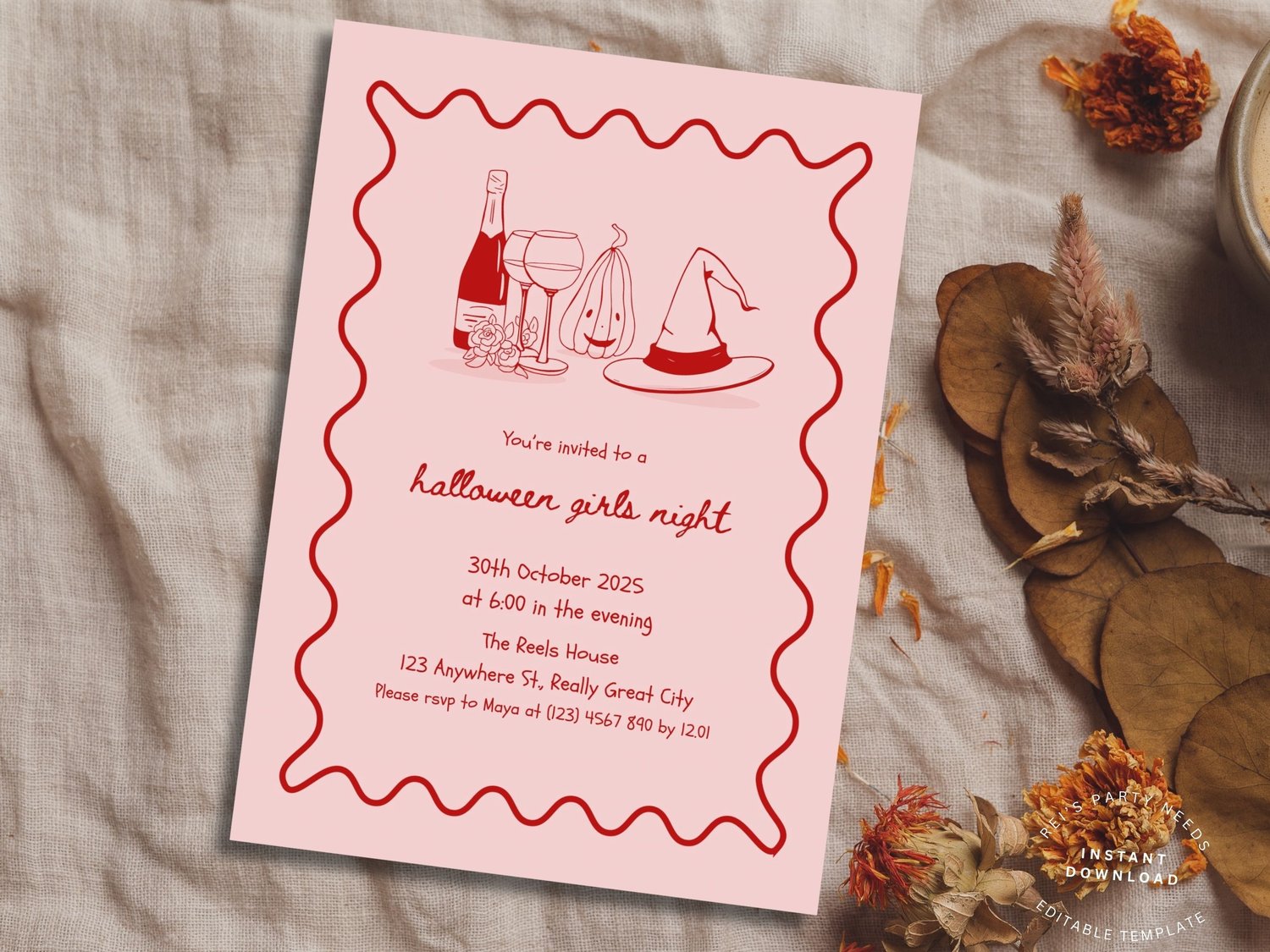 Halloween Girls Night Invitation, witches Halloween Party Invite, Ghouls Night Out Invite, Adult Halloween Party Invitation, Girls Night