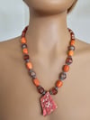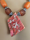 Orange Chunky Nugget Necklace with slice of aggot pendant