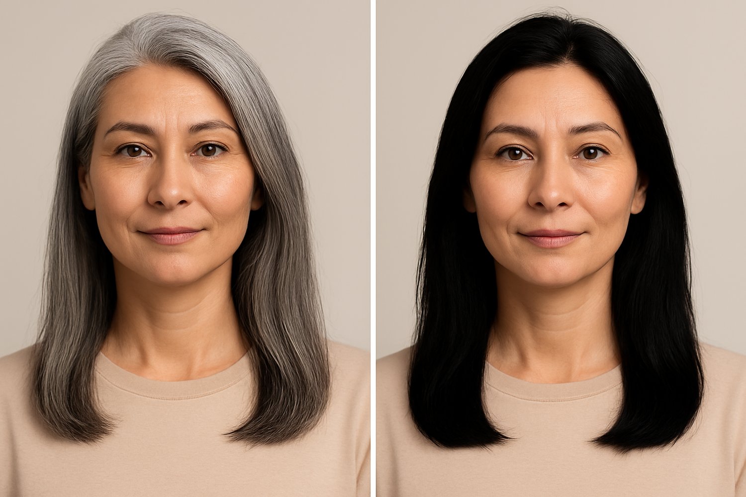 - Helps restore natural pigment, gradually turning grey strands darker with regular use.