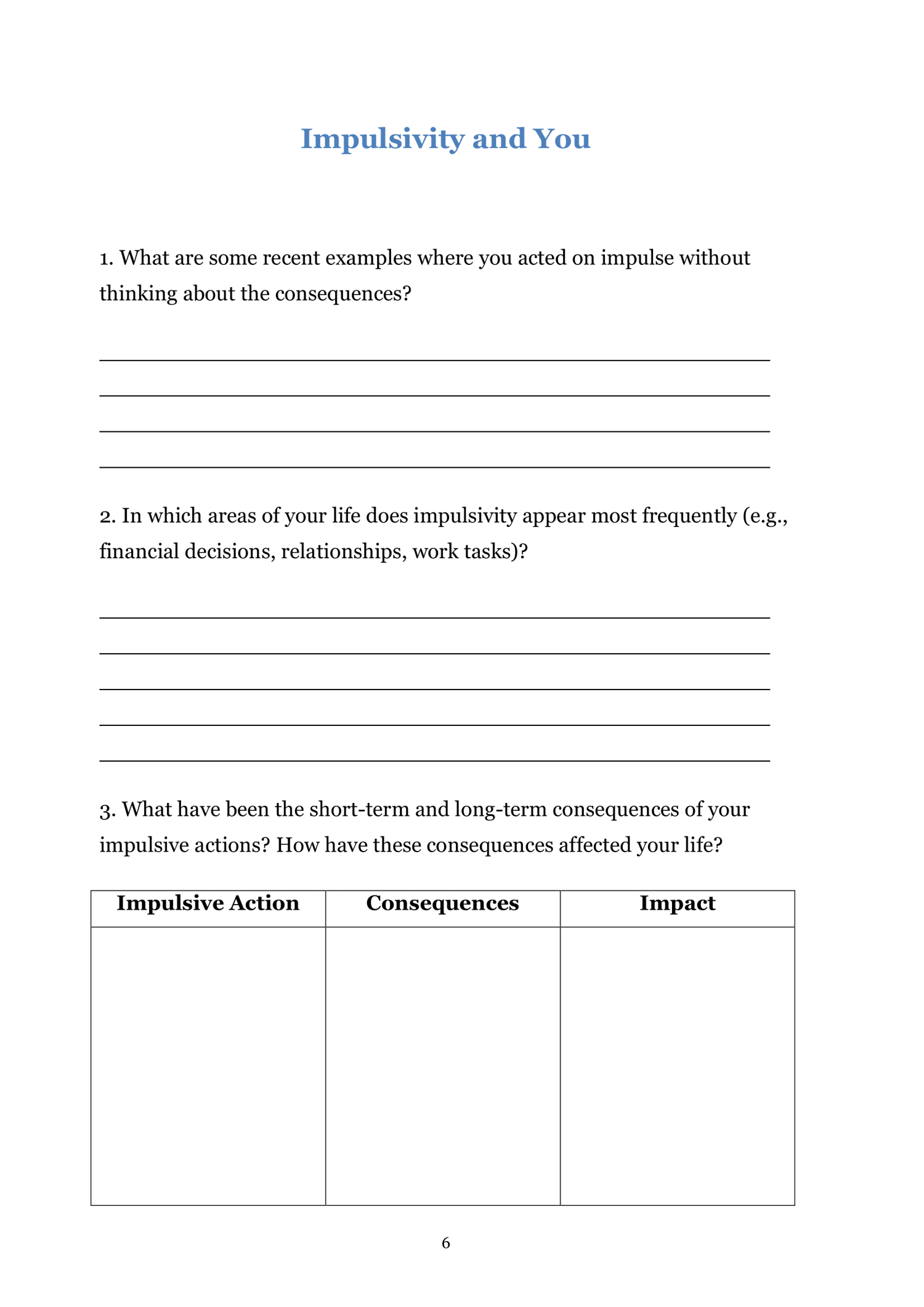 If so, Impulsivity Worksheets can help you understand and manage your impulsive behaviors.