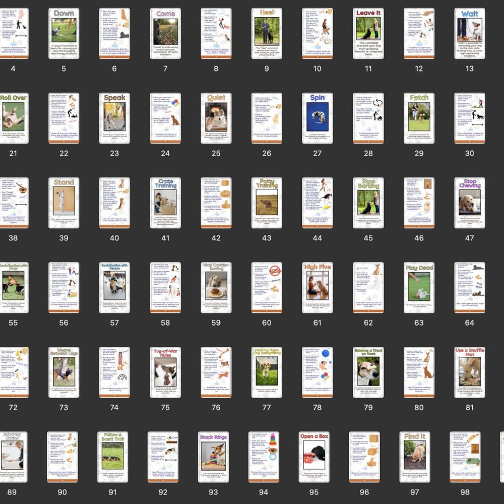 Whether you’re raising a puppy or sharpening an older dog’s skills, these flashcards turn training into a clear, enjoyable process.