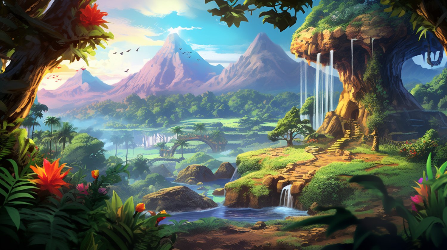 2. Escape into Imagination: Wandering deep into the lush landscape depicted in this wallpaper, you'll feel a sense of escapism like never before. Allow your imagination to run wild as you imagine embarking on your own adventure, exploring hidden paths, and discovering the mysteries that lie within this fantastical world.