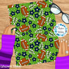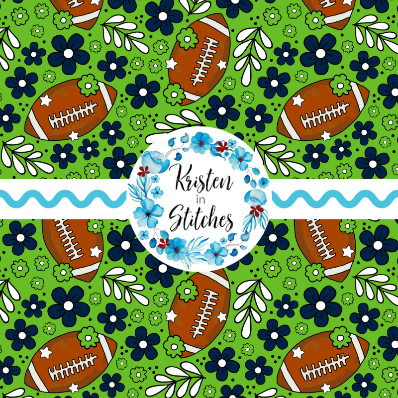 Footballs and flowers with Seattle Seahawks colors green and navy blue.