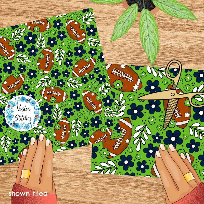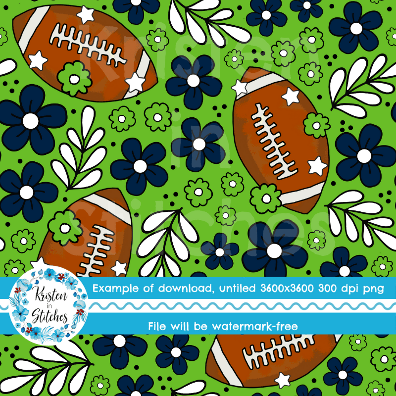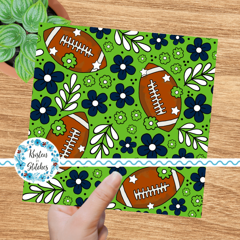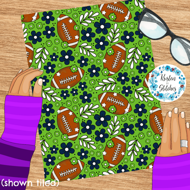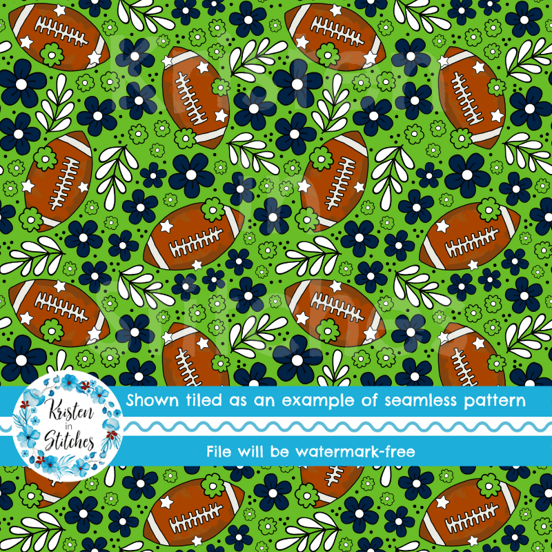 Football Team Spirit Floral Seamless Pattern, Seattle Seahawks Colors Green, Navy Blue