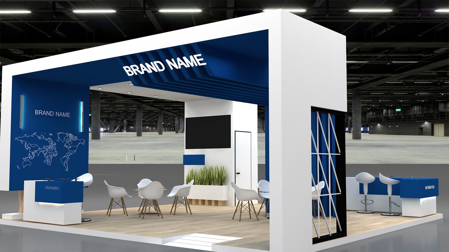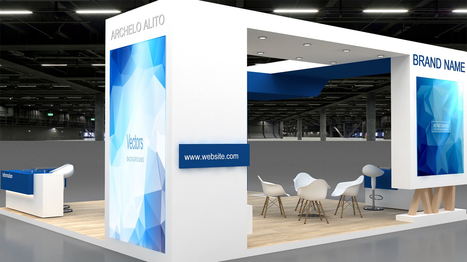 include design all necessary area in Exhibition and Booth Such as Vip and Storage and Counters and also Stand for products