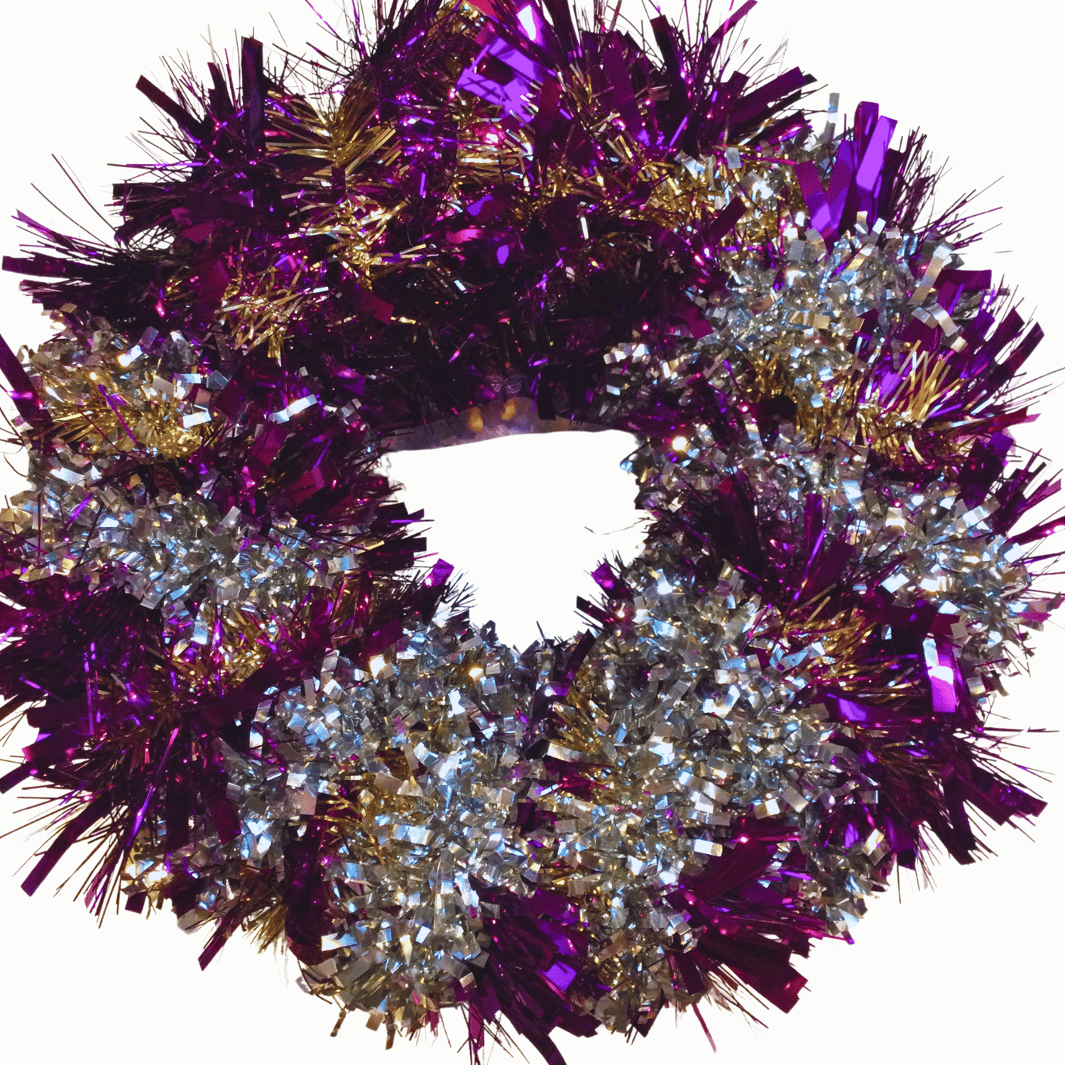 Made from carefully checked, cleaned, and upcycled plastic dolls; ponies, new glitterballs; tinsel and other blingalicious beauties, this colourful, upbeat wreath is large, measuring 30 cm in diameter. Ideal for adding some extra light and loveliness to your home.