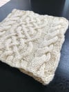 The Casla Cowl—sister design to the Casla Hat—with intersecting cables is named for the small village of Casla in County Galway, Ireland not far from the Atlantic coast. The rustic, rocky shore of this part of Ireland inspired all of the intertwining paths in this engaging, heavily-cabled cowl.
