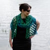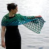 Rising from the depths of the ocean, oxygen air bubbles bloom bursting forth to the surface. Oceanic lets you feel the gentle breezes like soft waves caressing your skin. Rich with the colors of deep waters, this shawl makes a beautiful accessory for any unique occasion.