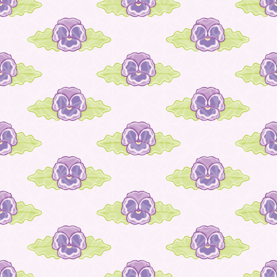 Garden pansy seamless vector pattern. Purple flower illustration background.