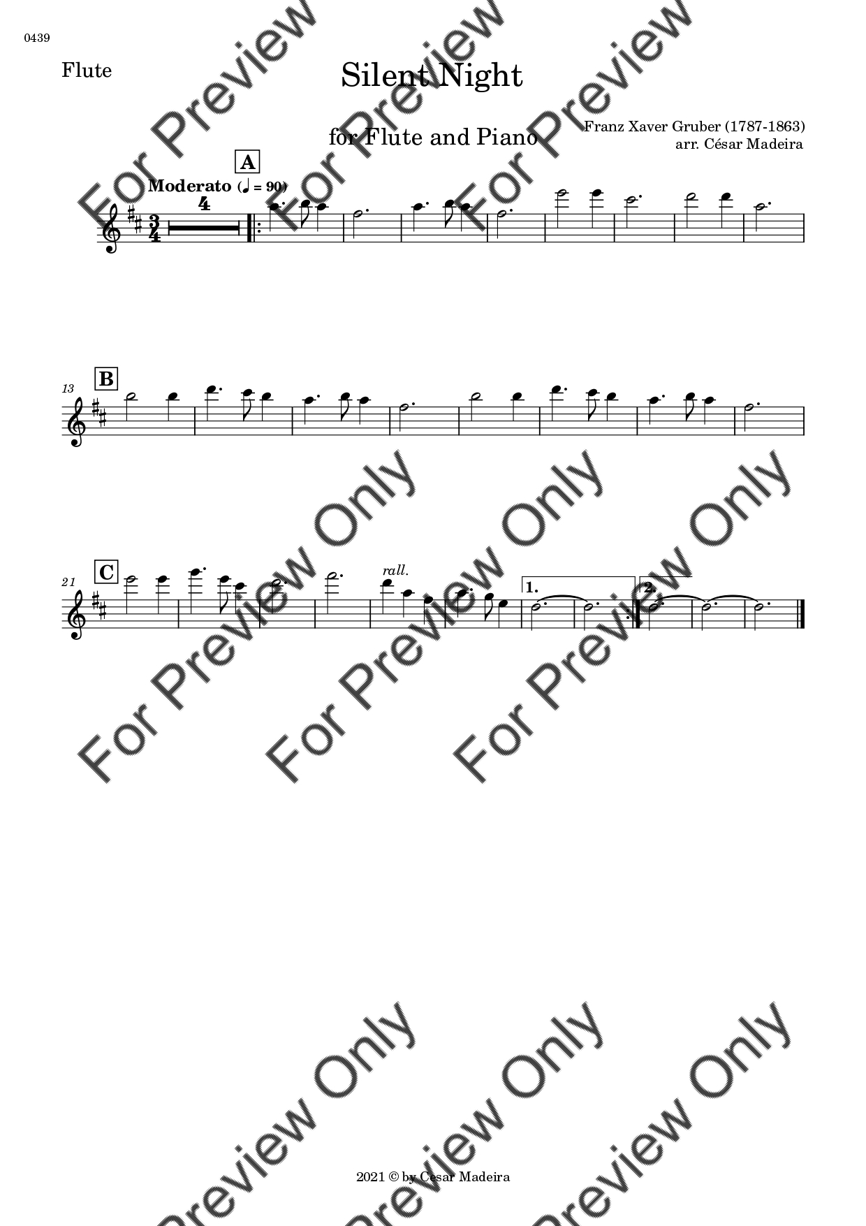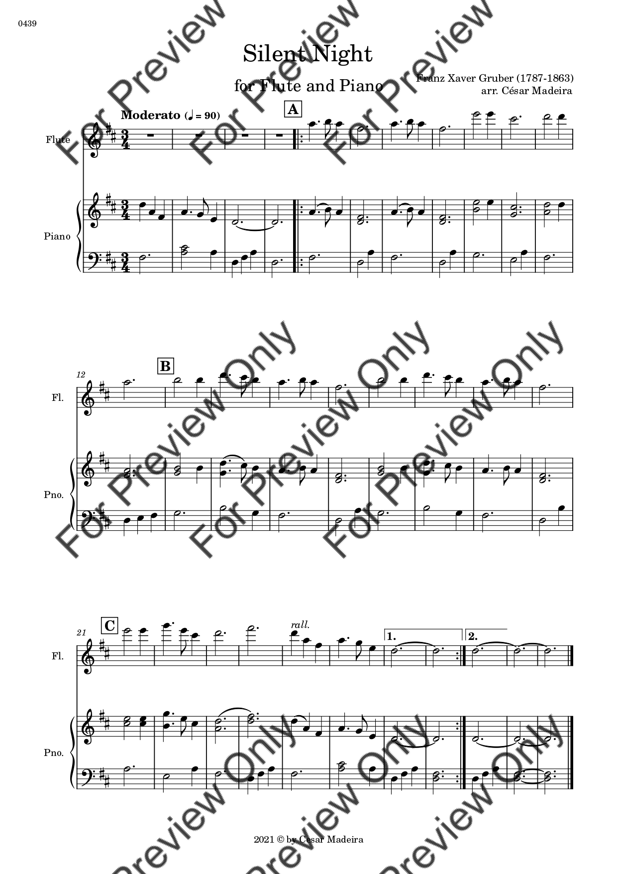 Silent Night. Arrangement for Flute and Piano. With Full Score and Individual Parts. Have fun!