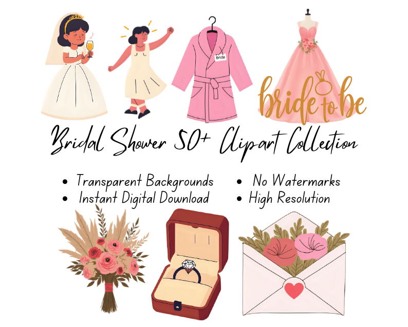 Bridal Shower 50+ Clipart Collection | High-Resolution Digital Printables | Instant Download | No Watermark