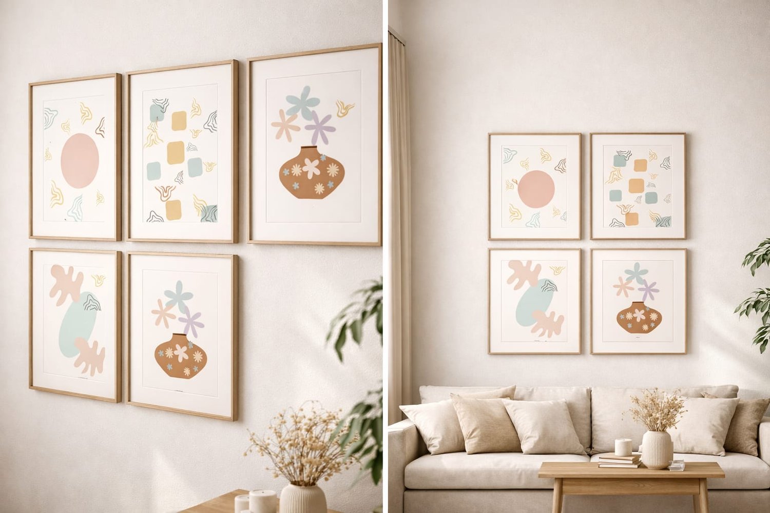 • Style: Abstract, Nordic minimal, warm neutral palette