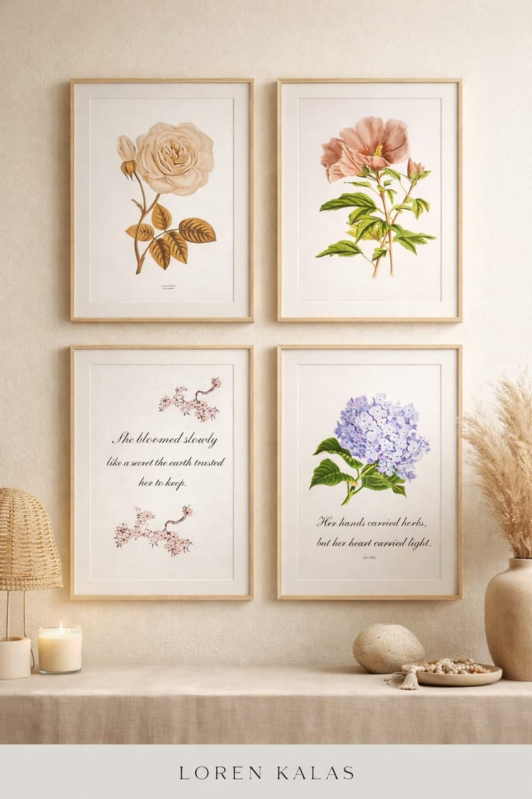 Whether styled as a gallery wall or displayed individually, each piece invites stillness and quiet beauty into everyday life.