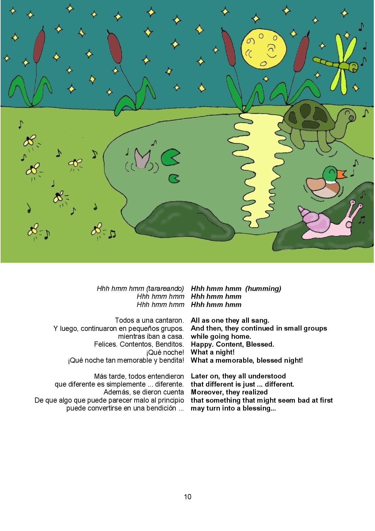 - la parte de la historia tiene aproximadamente 10 páginas con las ilustraciones en la parte superior y el texto en la mitad inferior;