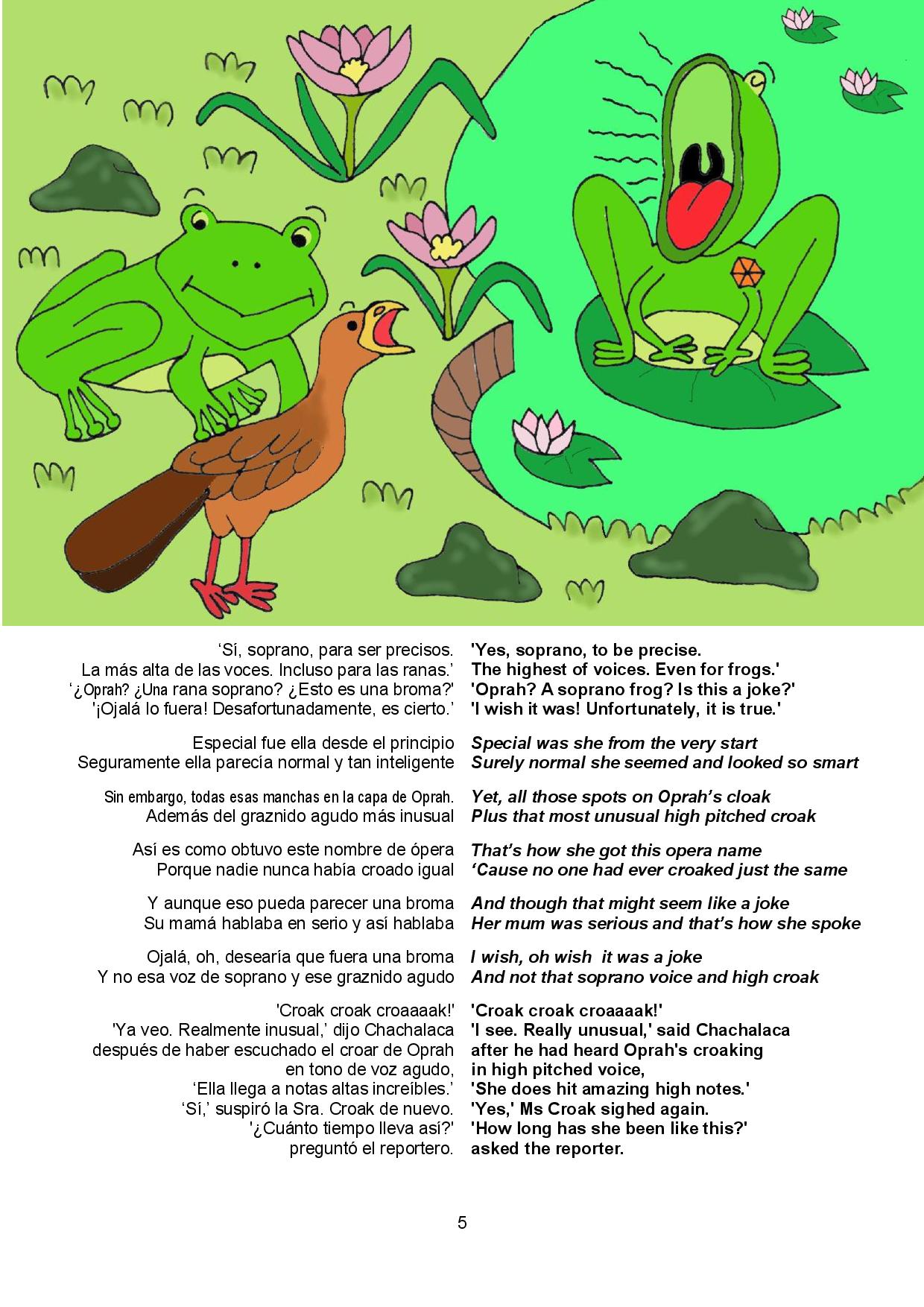 La Sra. Croak, la madre de Oprah, está siendo entrevistada sobre su extraordinaria hija por el reportero de Pond and Forest, el Sr. Chachalaca Wren. A pesar de que no está de acuerdo con la opinión del periodista, Croak, de mala gana, comienza a describir el ciclo de vida de Oprah y inusual talento. Afortunadamente, los amigos de Oprah creen en sus singularidades excepcionales y todo resulta ser una bendición disfrazada, apreciada por todos los habitantes del estanque y alrededores.
