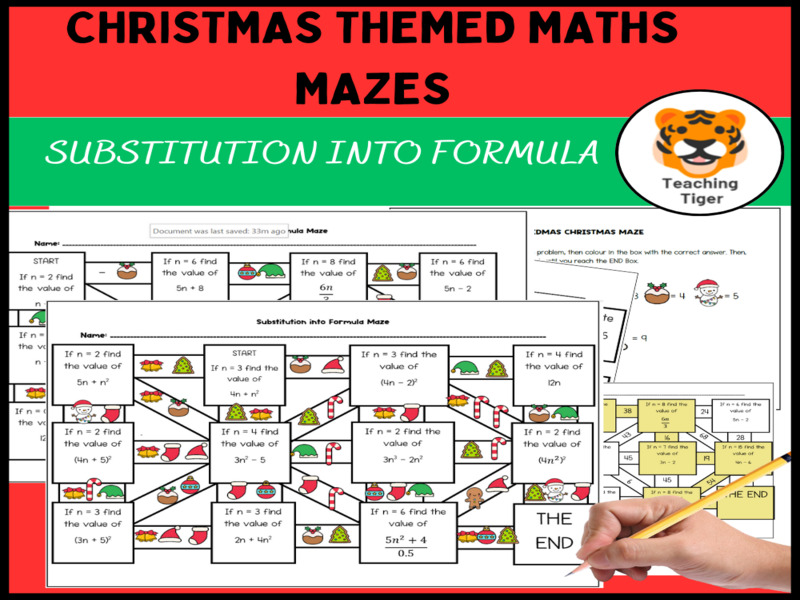 These Christmas Themed maze worksheets are great for homework, math centers, substitute plans or extra practice of substitution into formula. There are 2 different levels of mazes to choose from,. They’re super easy to just print and use! A fun way to assess or revise brackets during this Christmas period.