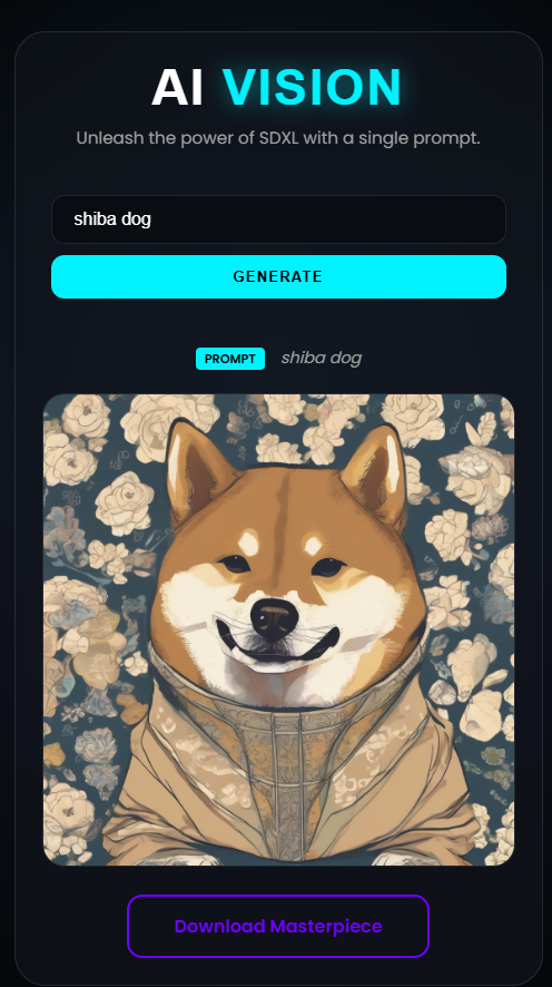 - SDXL Powered: Connected to the Stable Diffusion XL 1.0 engine via the Hugging Face Router API for stunning 1024x1024 results.