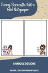 Get your hands on these quirky note cards and start spreading smiles with each handwritten message. Trust us, your friends will be begging for more! So, what are you waiting for? Add these Funny Retro Girl Notepaper to your cart now and get ready to unleash your inner comedian in style! Your 8 unique note cards will be delivered on 4 PDF pages. This is the cutest Sarcastic Retro Girl Statioinery. Order now!