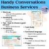 - to improve communication by discussing various topics related to business services, HR, IT, Legal tasks, Business Consulting, Customer Service, and more!