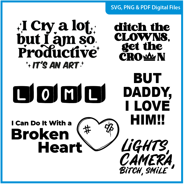 Broken Heart TTPD Swifti Lyric Bridge SVG, PNG & PDF Cameo, Cricut I Easy to download face vector