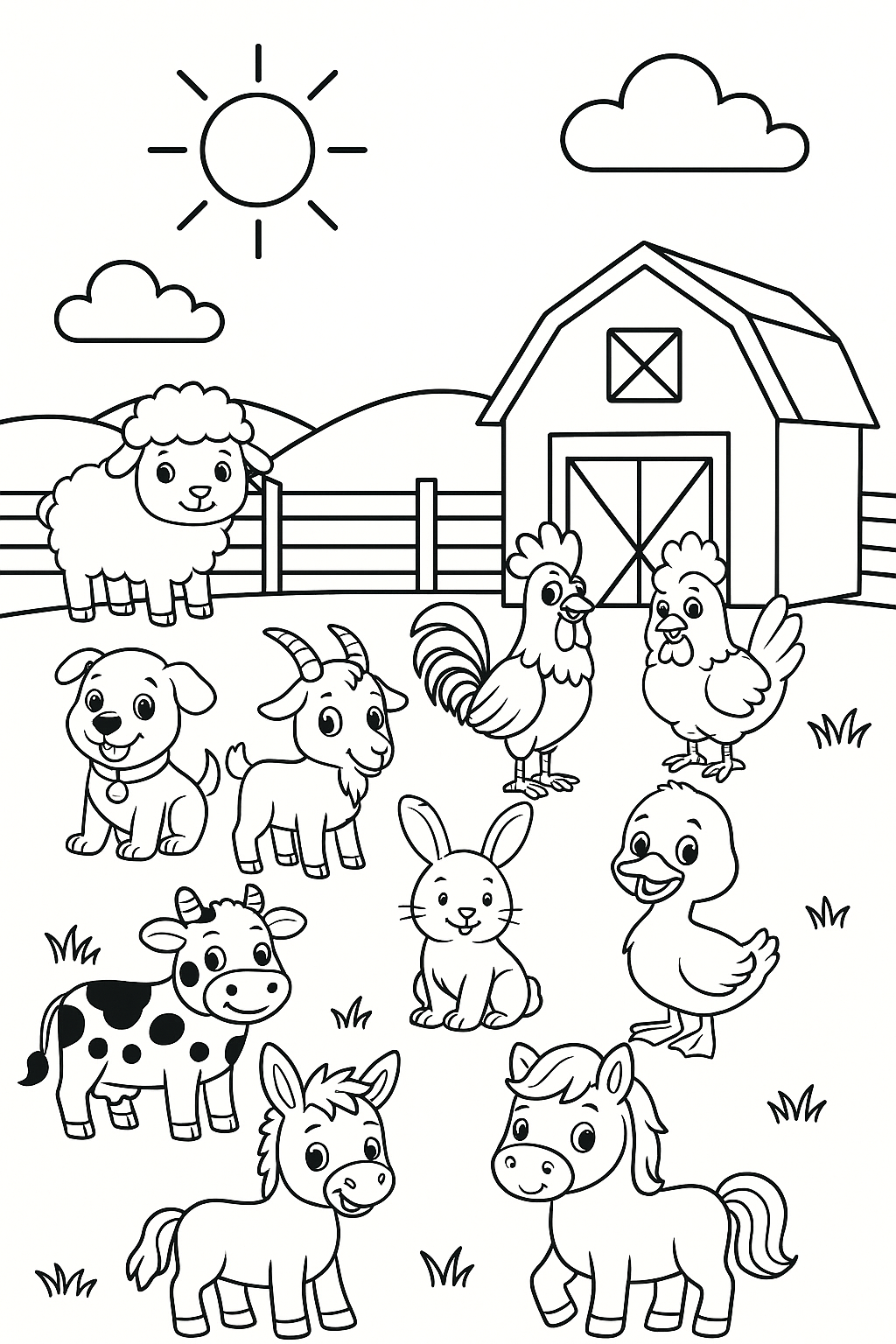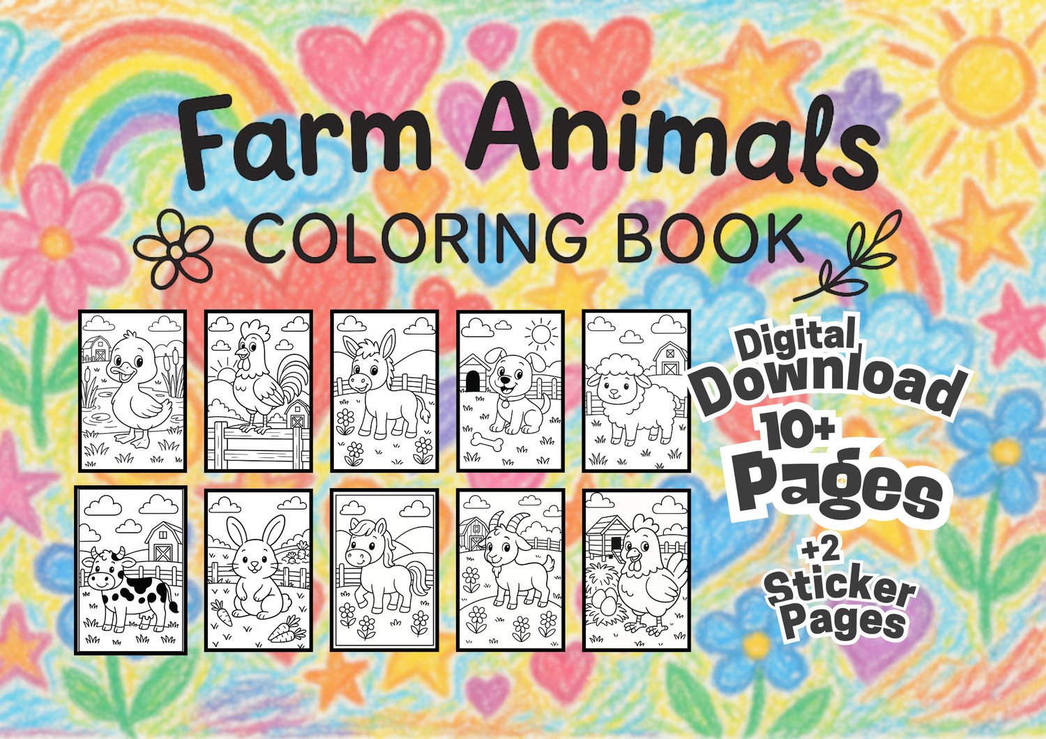 Get ready for hours of farm-tastic fun with this adorable Farm Animals Coloring Book! Perfect for kids.