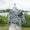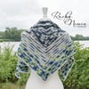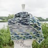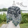 The pattern is worked top down. It has four sections and the neck curves sharply upwards. The notes have instructions for adjusting the neck so it’s flatter across the top.The shape is specifically designed to be easy to wear and style. It stays on the shoulder without a shawl pin, and wraps around like a great big hug.