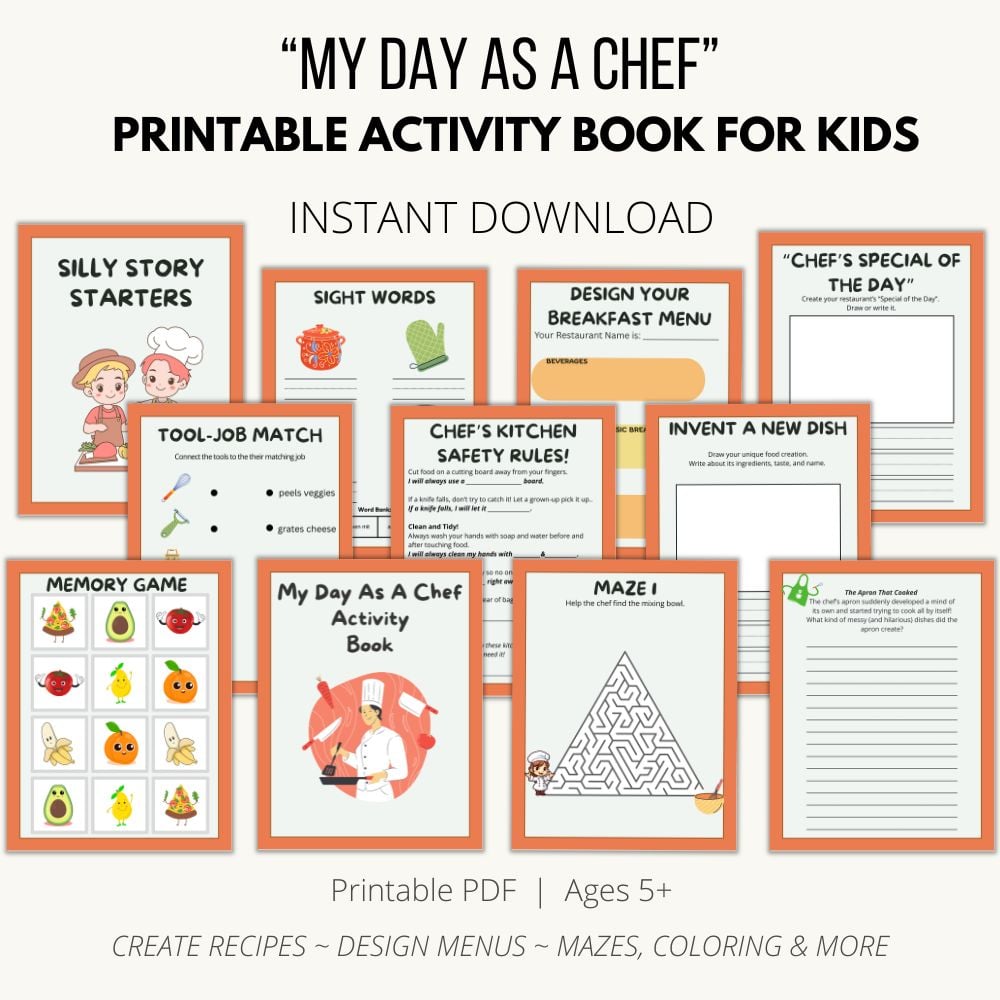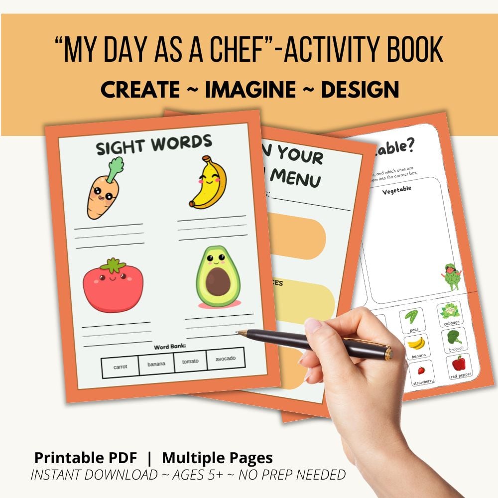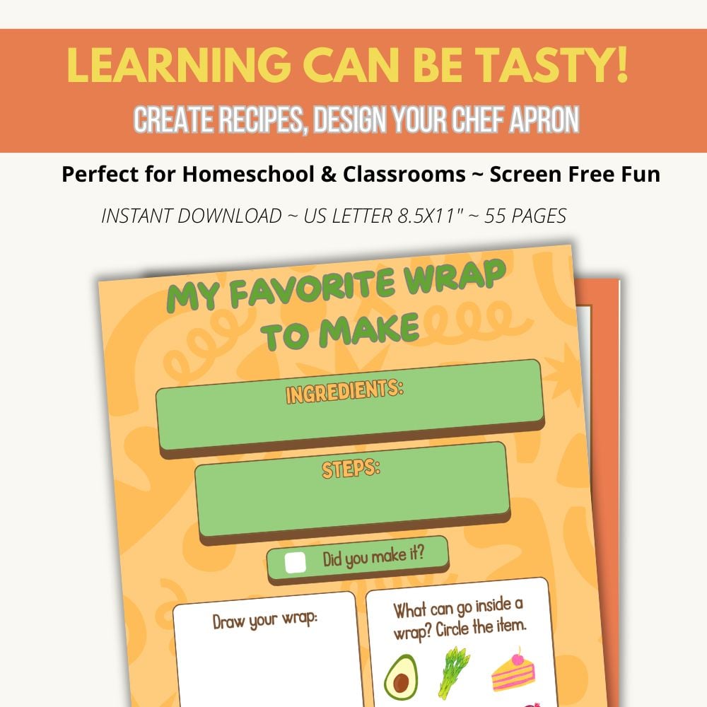 - Recipe Invention: Guided pages for them to Create a New Recipe, detailing ingredients and instructions like a real chef.