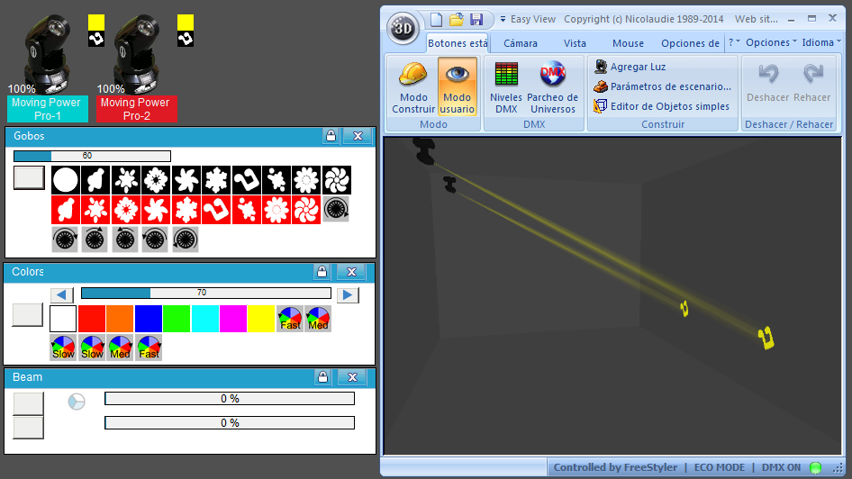 - Esta librería NO reemplaza al Fixture de Freestyler o QLC+, sólo es para ver la representación 3D. Es decir, HAY QUE TENER YA EL FIXTURE DE FREESTYLER o de QLC+ para controlar el equipo real.