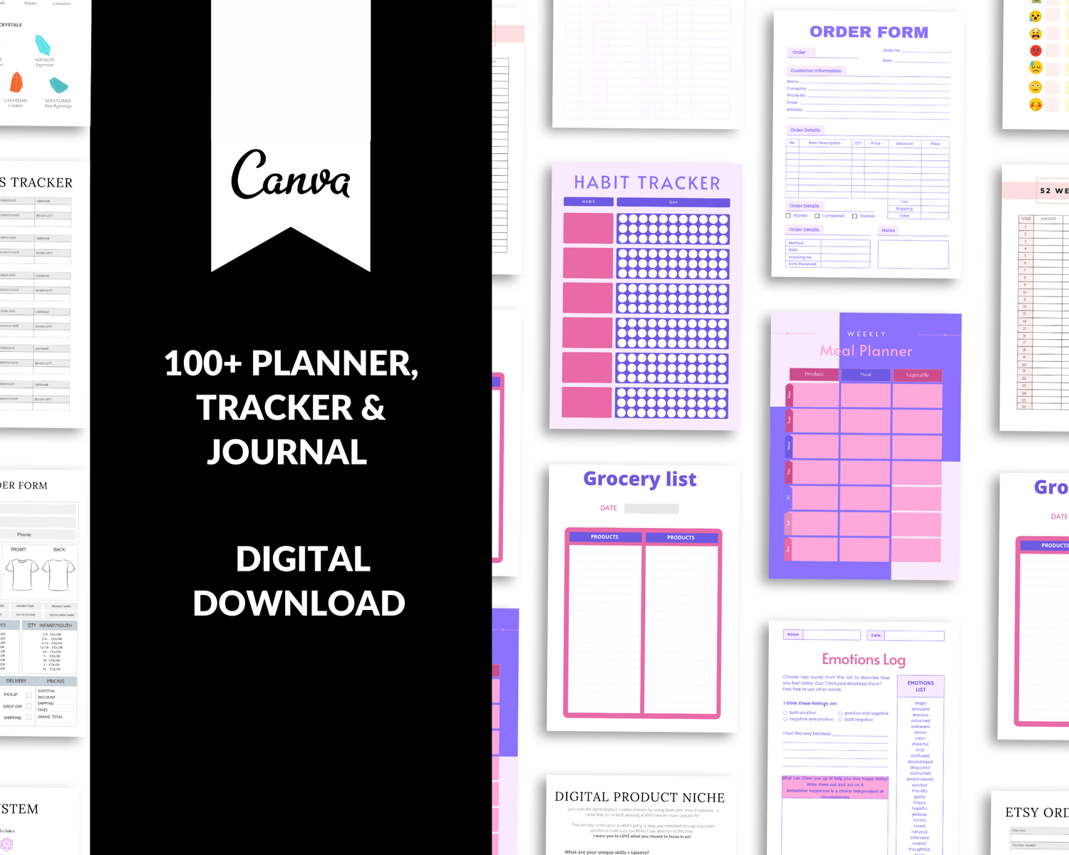 Stay organized, motivated, and inspired with this all-in-one planner bundle! Designed to simplify your life, this mega set includes planners, trackers, and journals for every aspect of your daily routine—from health and fitness to finances, mindset, and manifestation.