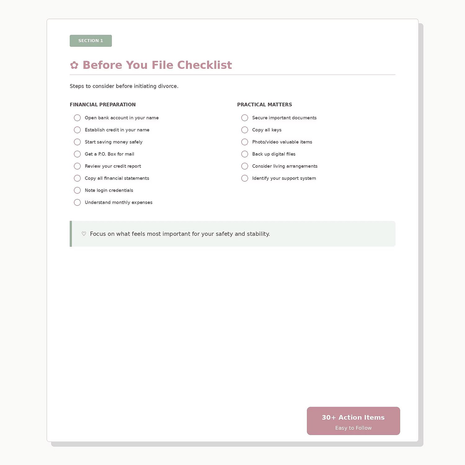 ✿ Before You File Checklist (30+ action items)