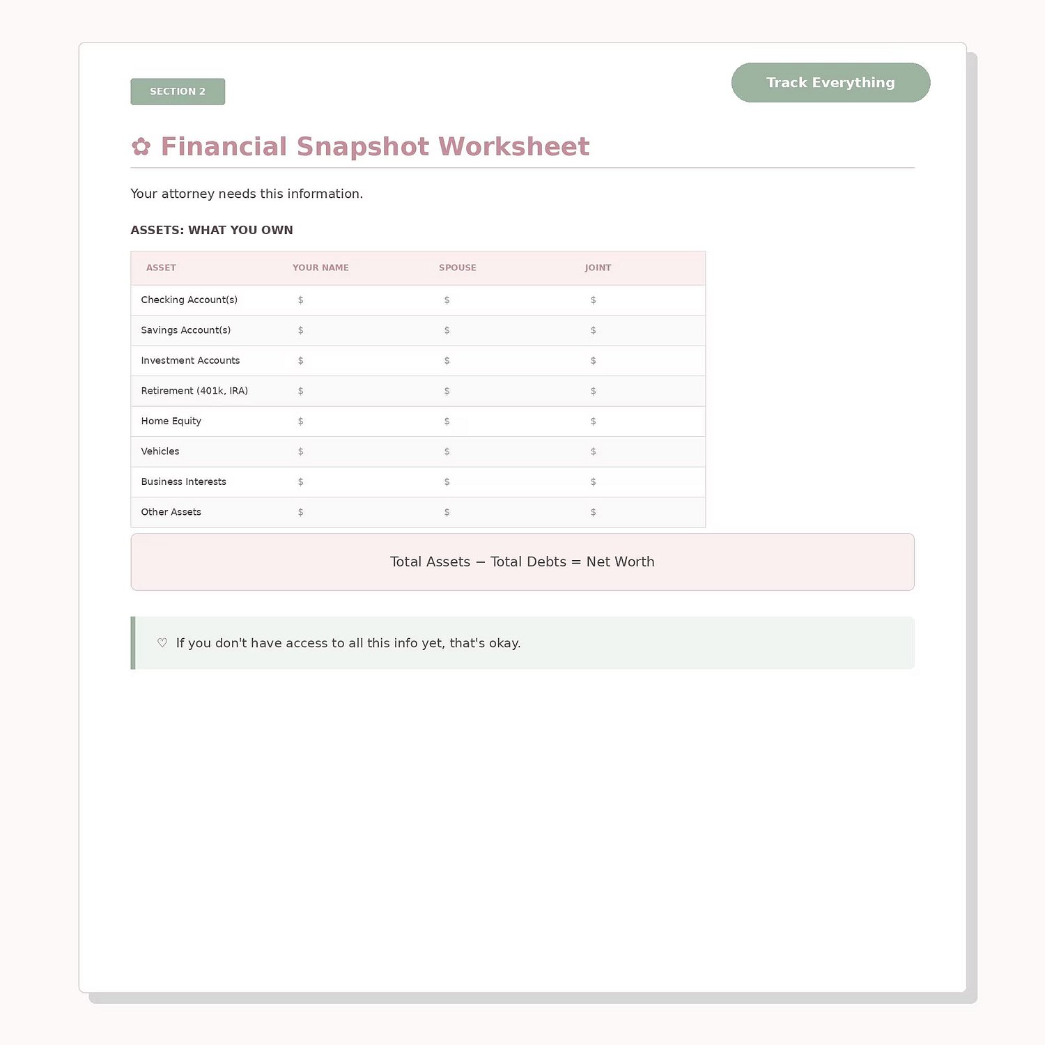 ✿ Financial Snapshot Worksheet