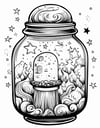 Immerse yourself in a world of wonder and mystique with “Magical Jars” coloring pages. Crafted with an eye for intricate detail, each illustration in this set tells a story within the confines of a beautifully crafted jar – from enchanted forests and fairy gardens to whimsical landscapes and fantastical realms. Each scene brims with enchantment, with details like glowing orbs, shimmering stars, intricate patterns, and mystical creatures hiding in the nooks and crannies.