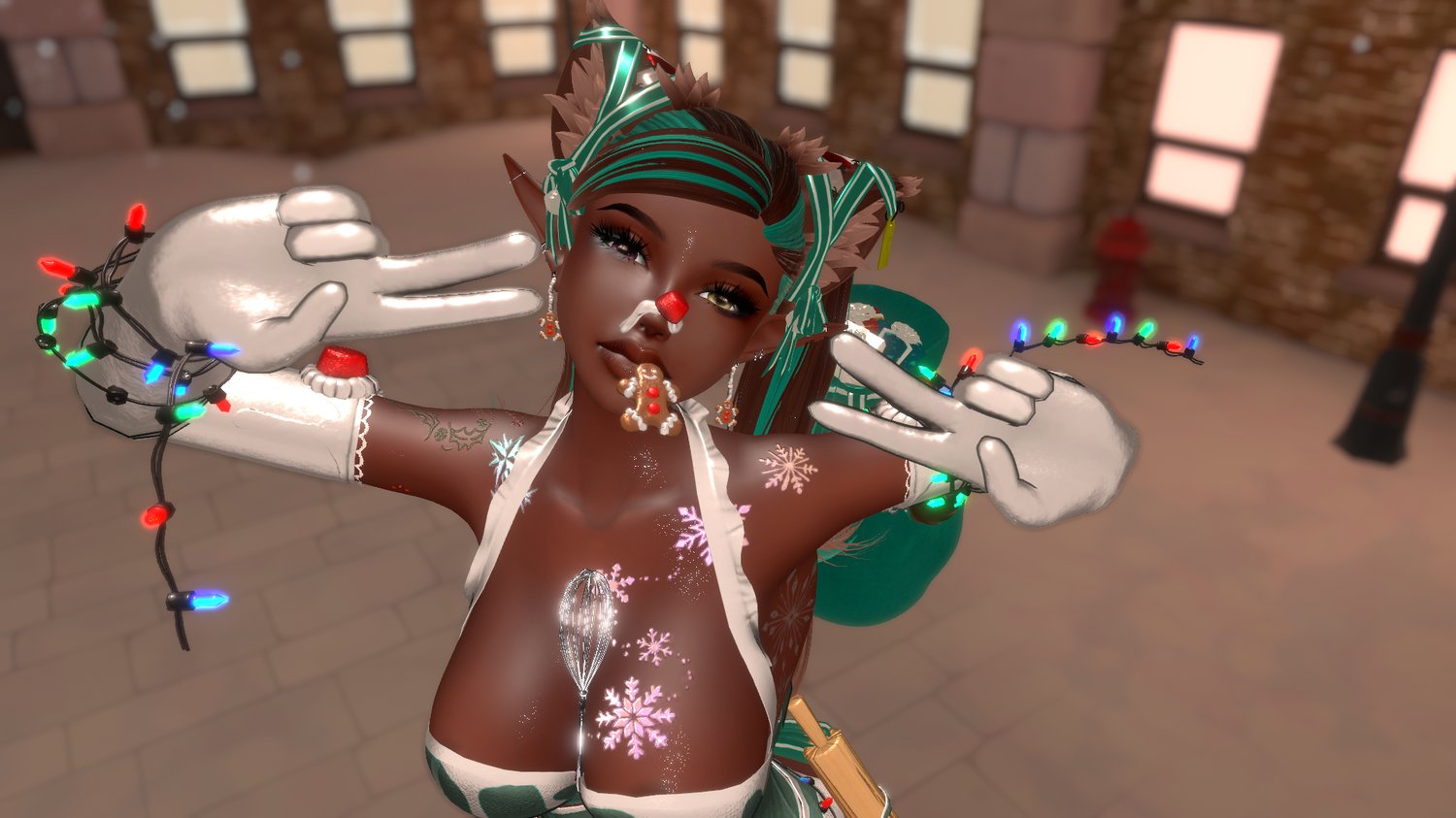 - Face Piercings, Earrings, Chef's Hat, Nose Icing, Mouth Gingerbread Cookie Rolling Pin, Chest Stuff (Mixer, Gingerbread men) Body Lights, Hot Cocco, Toe Beans