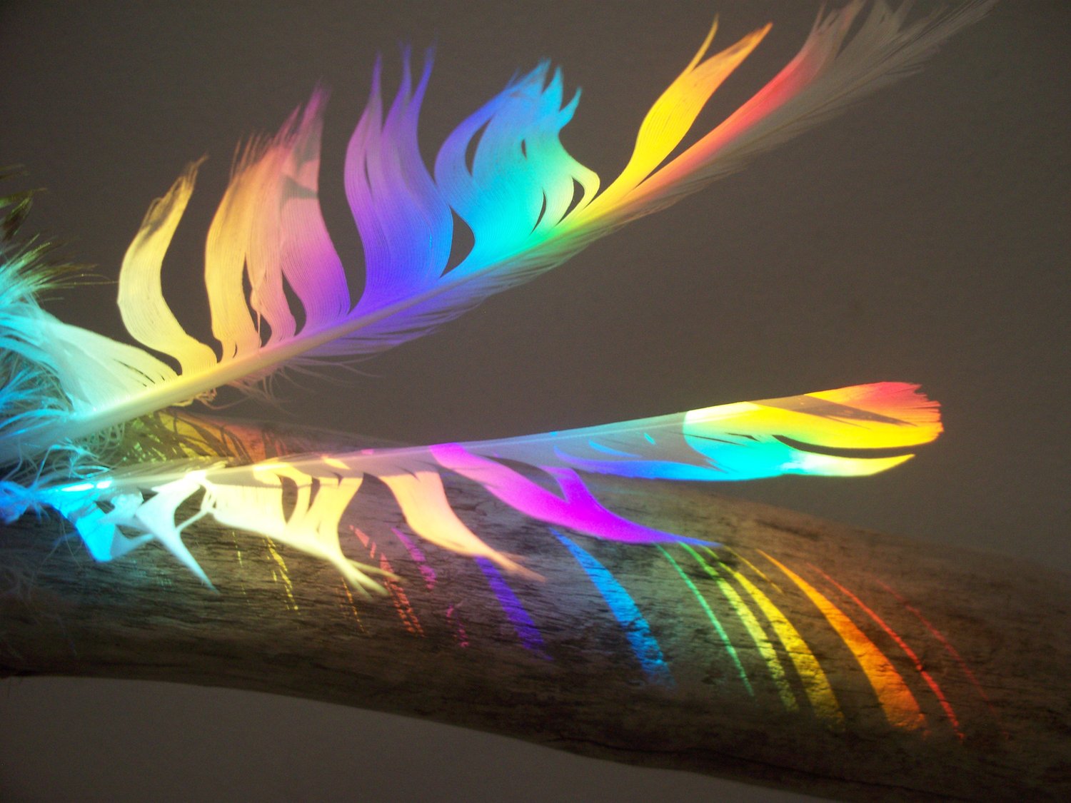"Feather Wing Reflection" was created with Rainbow and two feathers and drift wood.