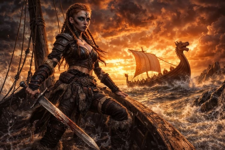 A city burns. Fireworks crack the sky like a victory hymn. And through the smoke steps a figure with a calm, unsettling smile—cloak torn by wind, leather cinched tight, metal charms catching the firelight like whispered oaths.